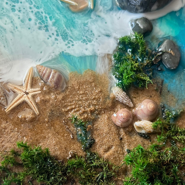سینی چوب و رزین طرح دریا سایز20در30 مناسب پذیرایی و دکوری