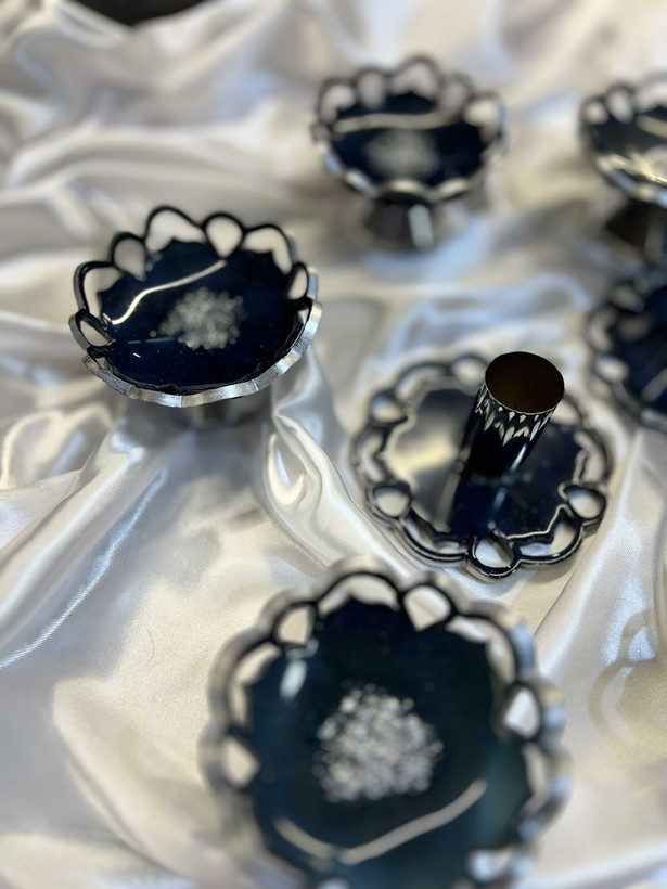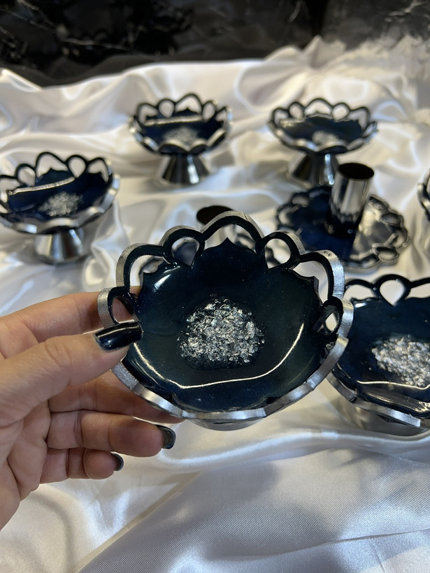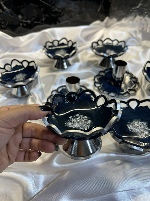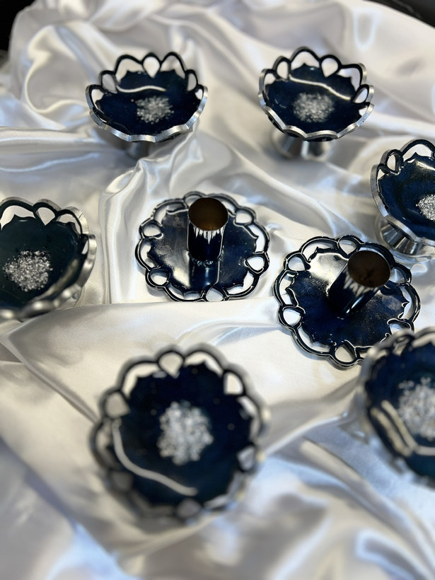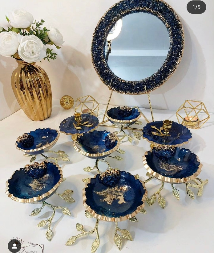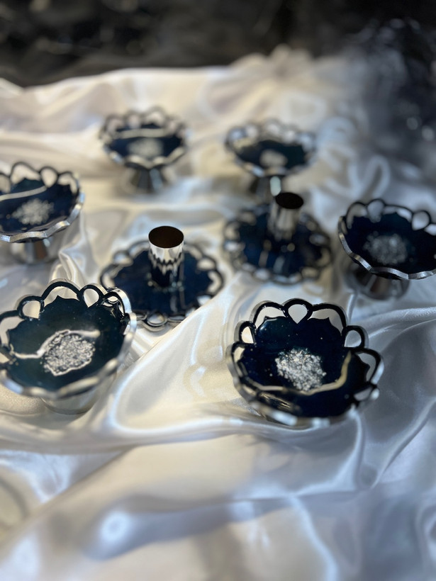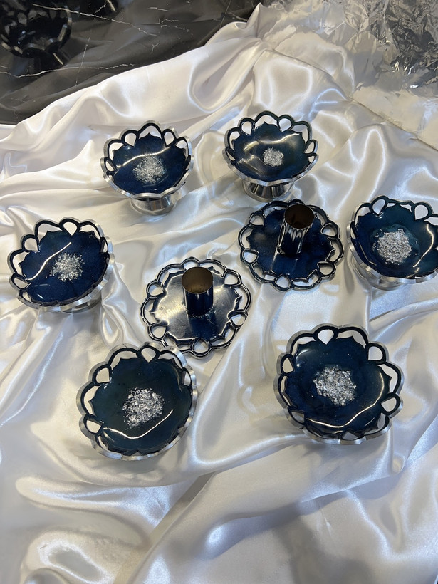 هفت سین رزینی طرح گل رنگ سورمه ای شاین