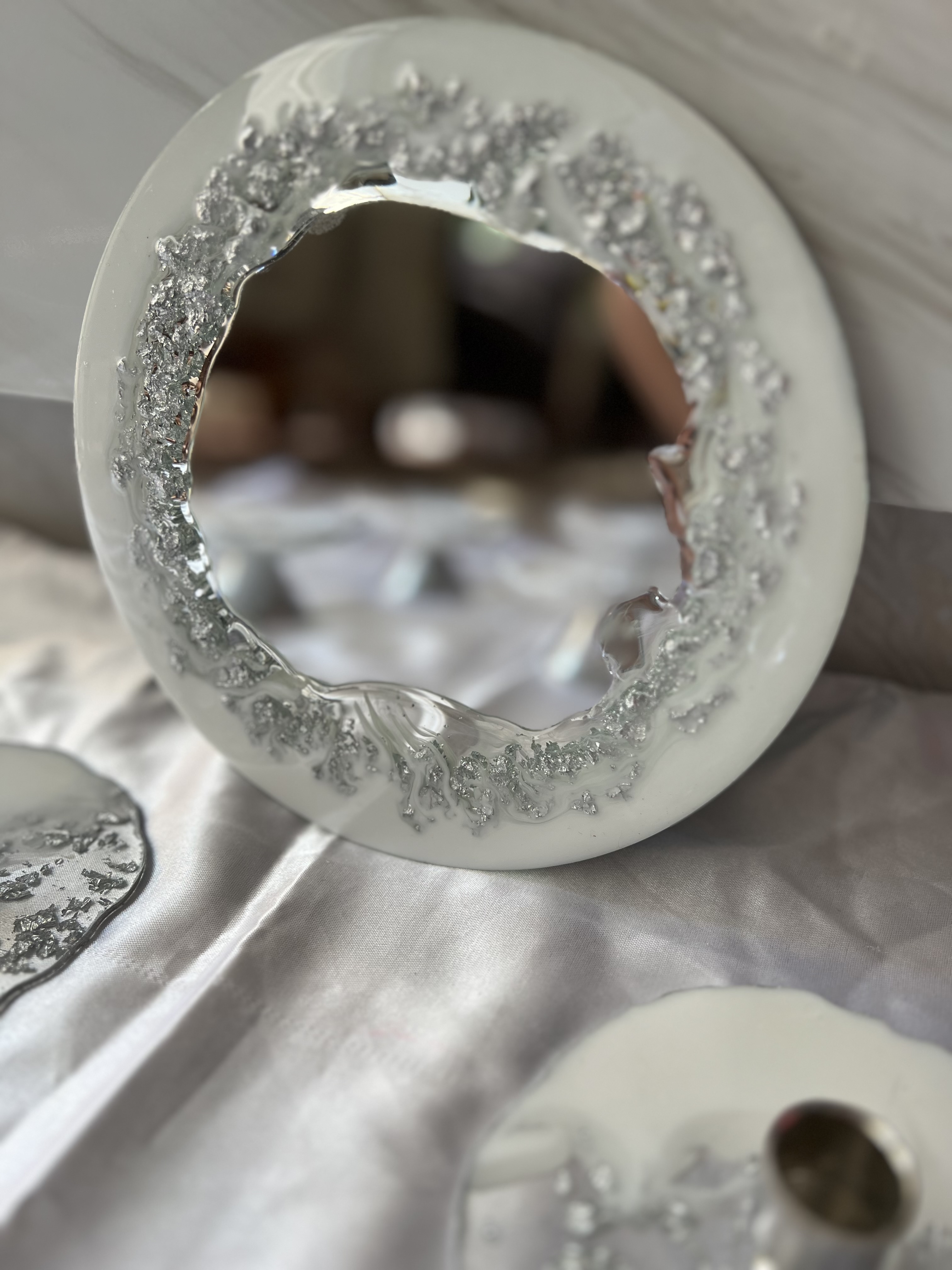 شامل ۶ عدد پیاله پایه دار و یک جفت شمعدان و آینه