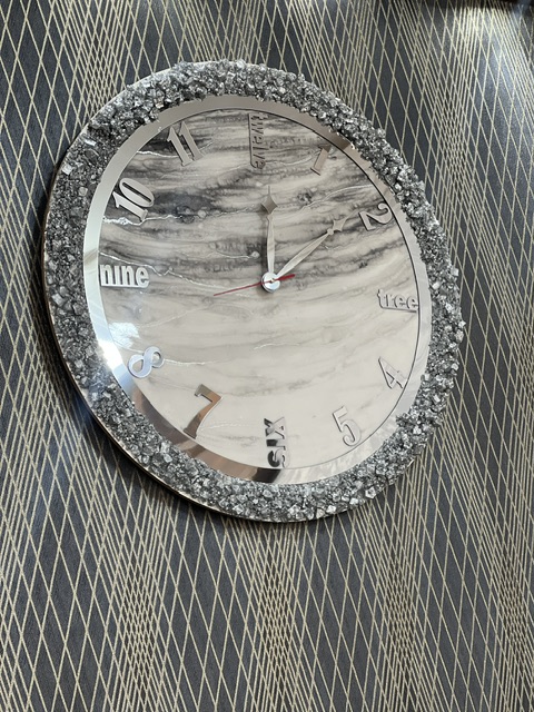 ساعت دیواری طرح مرمر کار شده با کریستال سیلور