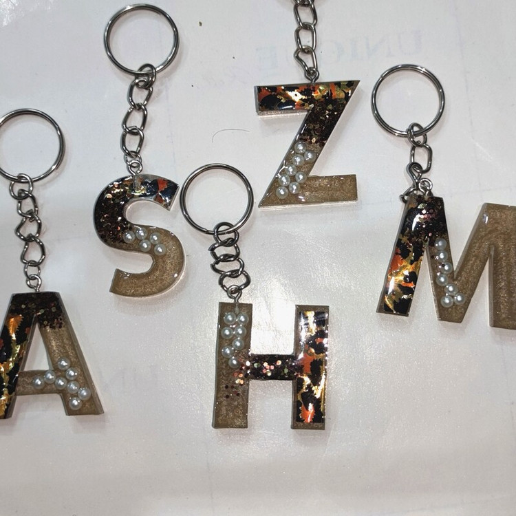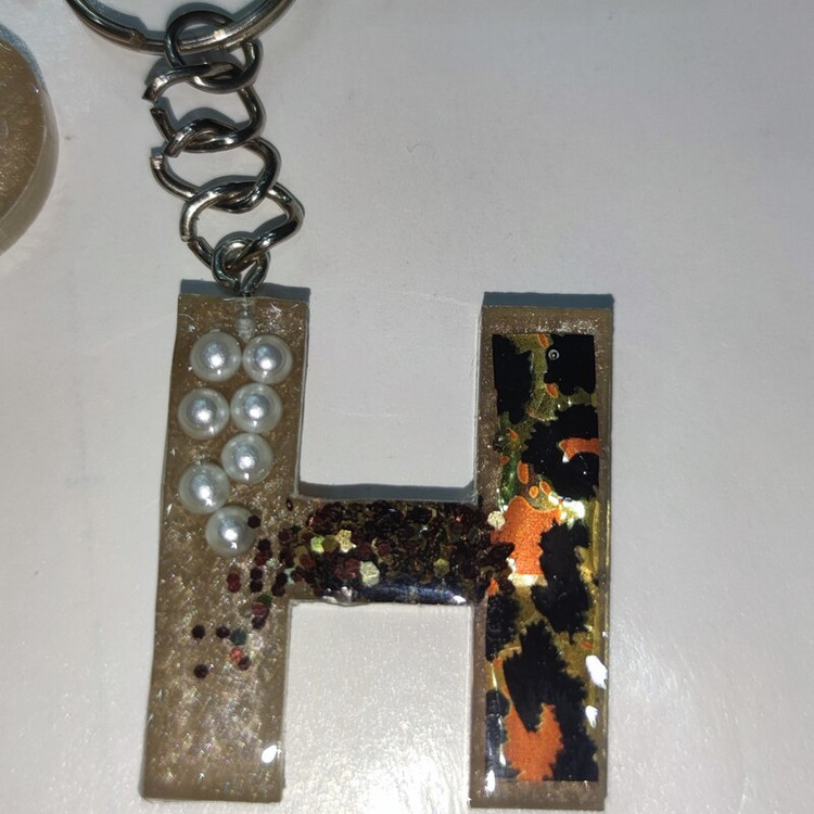 سرکلیدی حروف طرح پلنگی و مرواریدی از جنس رزین. رنگ نسکافه ای متالیک مروارید های طبیعی و طرح کار شده داخل کار میباشد و هیچ تغیر رنگی نخواهد داشت. قابل اجرا در رنگ و طرح دلخواه شما