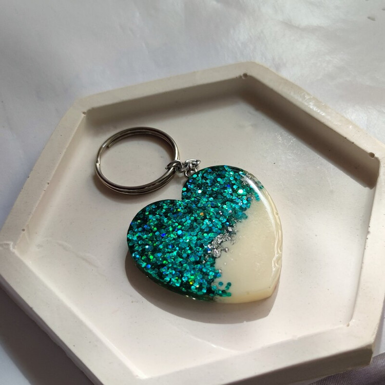 سرکلیدی قلب سایزحدود۴سانت رنگ سفید و شاین آبی جنس رزین ضد آب بدون تغییر رنگ