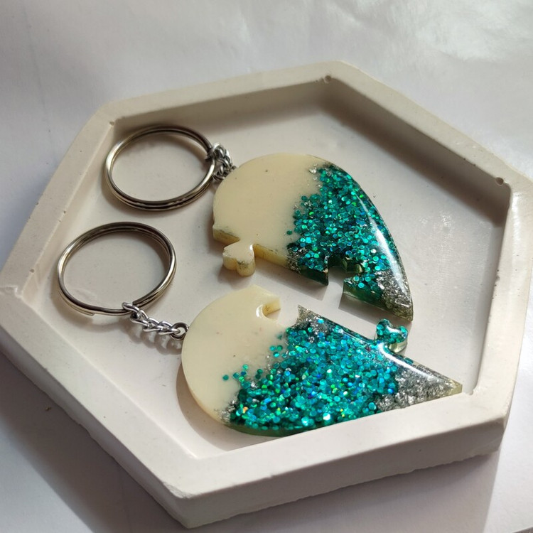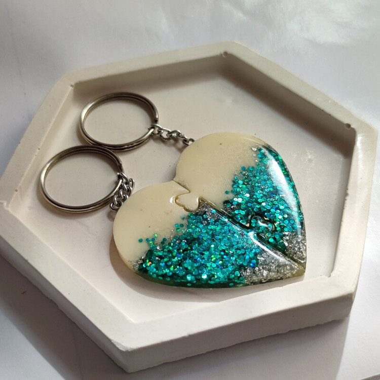 سرکلیدی قلب جفتی دو سرکلیدی مجزا رنگ سفید و شاین آبی جنس رزین قابل سفارش در رنگ و طرح دلخواه شما