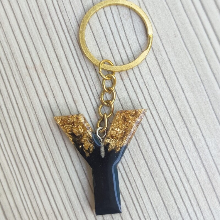 جا کلیدی حرف y رنگ مشکی کارشده با ورق طلا از جنس رزین سایز حدود۴سانت قابل اجرا در رنگ و طرح دلخواه شما