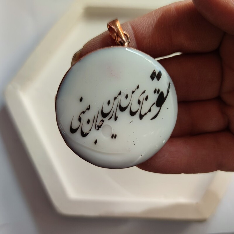 گردنبند دوطرفه نوشته و گل رزینی سایز4سانت فرم مسی
