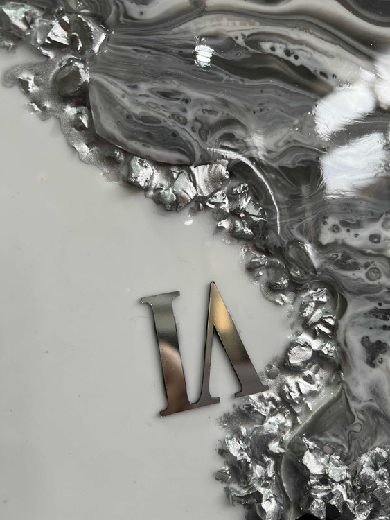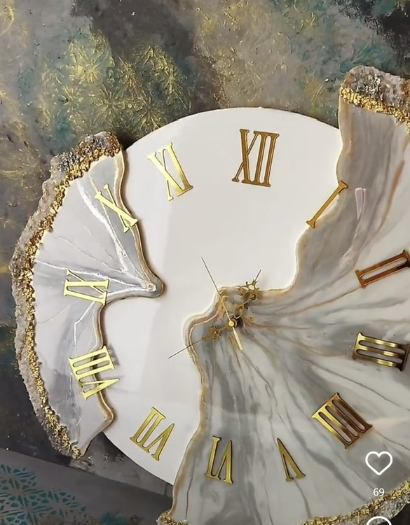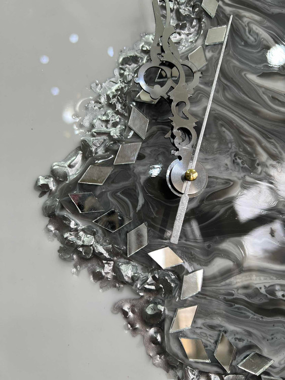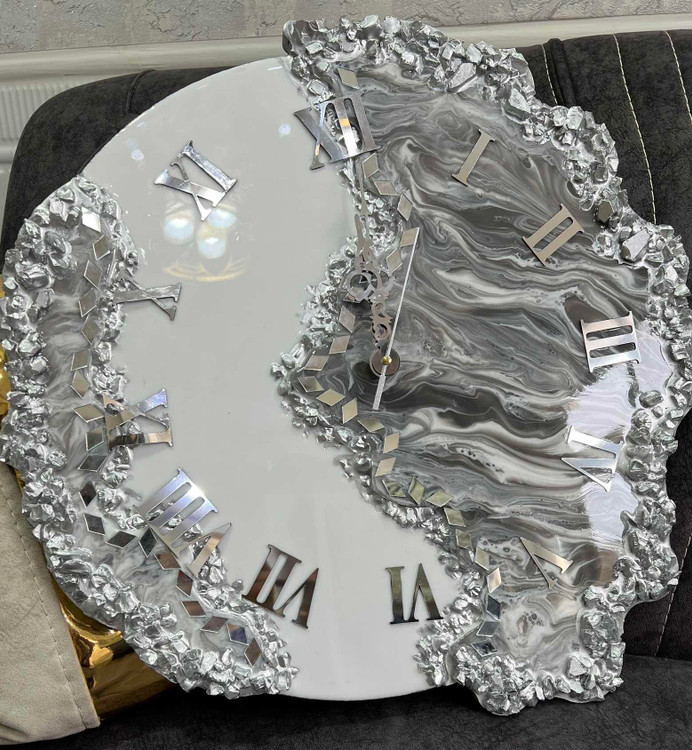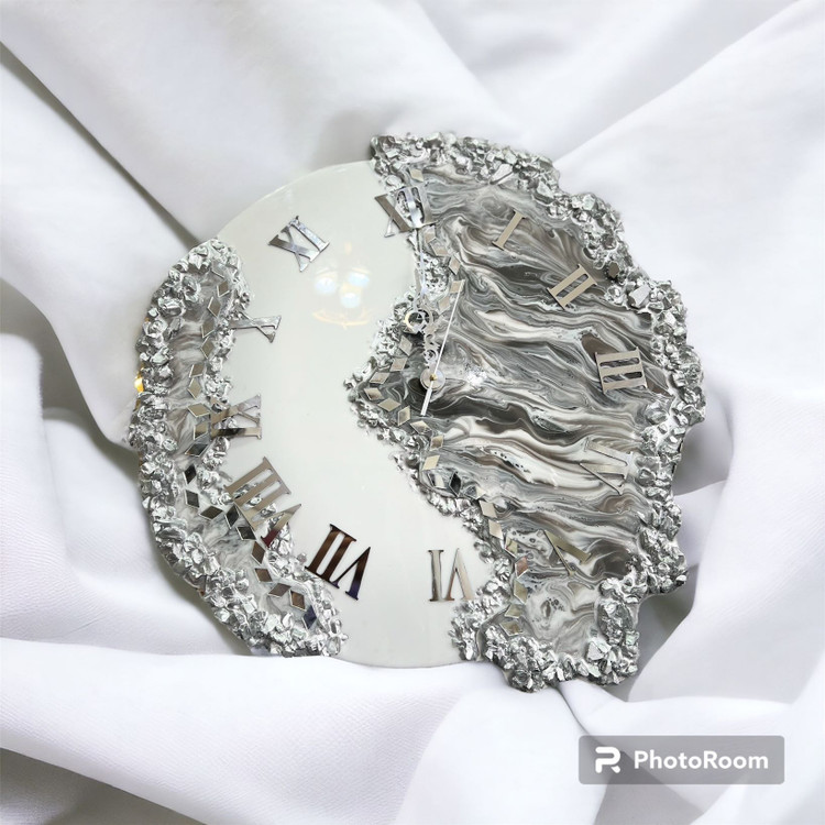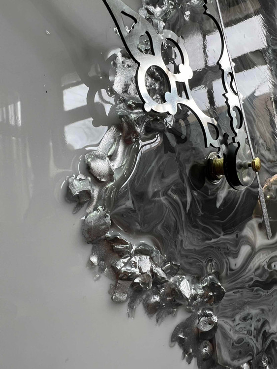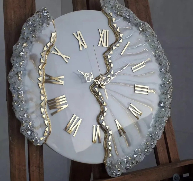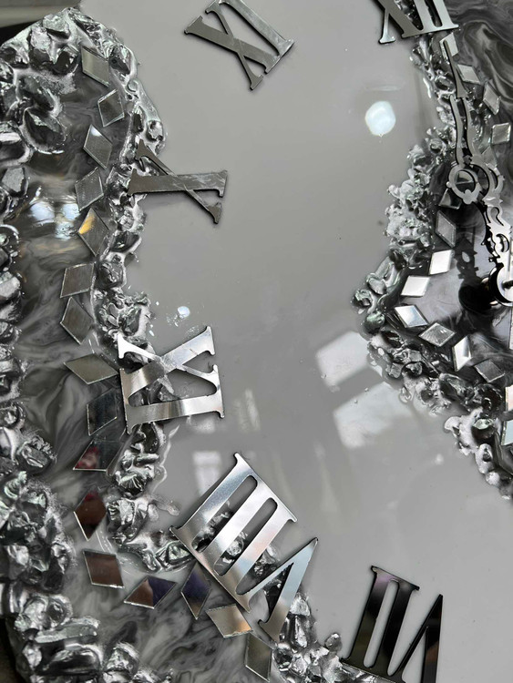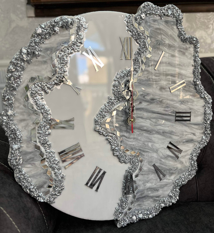 ساعت دیواری ام دی اف درجه ۱ کار شده با رزین و کریستال طرح دفرمه موجود در قطر۵۰/۶۰ /۷۰ سانت