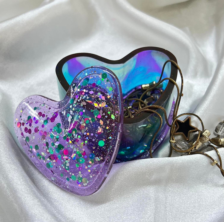 جا جواهری رزینی طرح قلب درب دار رنگ آبنباتی ترکیبی بنفش و آبی کار شده با اکلیل قابل اجرا در رنگ دلخواه شما.جهت تغیر رنگ پس از ثبت سفارش با پشتیبانی تماس گرفته و رنگ موردنظر را انتخاب نمایید