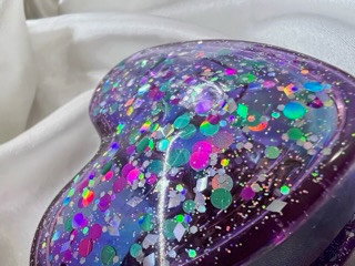 جا جواهری رزینی طرح قلب درب دار رنگ آبنباتی ترکیبی بنفش و آبی کار شده با اکلیل قابل اجرا در رنگ دلخواه شما.جهت تغیر رنگ پس از ثبت سفارش با پشتیبانی تماس گرفته و رنگ موردنظر را انتخاب نمایید